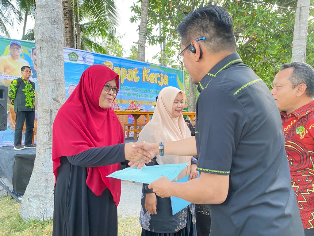 Piagam penghargaan atas pencapaian tersebut diserahkan langsung oleh Kepala Kantor Kementerian Agama (Kemenag) Kabupaten Sinjai, Faried Wajedi, kepada Rosmini, yang mewakili kepala madrasah. Penyerahan dilakukan pada pelaksanaan Rapat Kerja Seksi Pendidikan Madrasah yang digelar di Pantai Panrang Luhu, Kabupaten Bulukumba. Bulukumba, (23-09-2025)